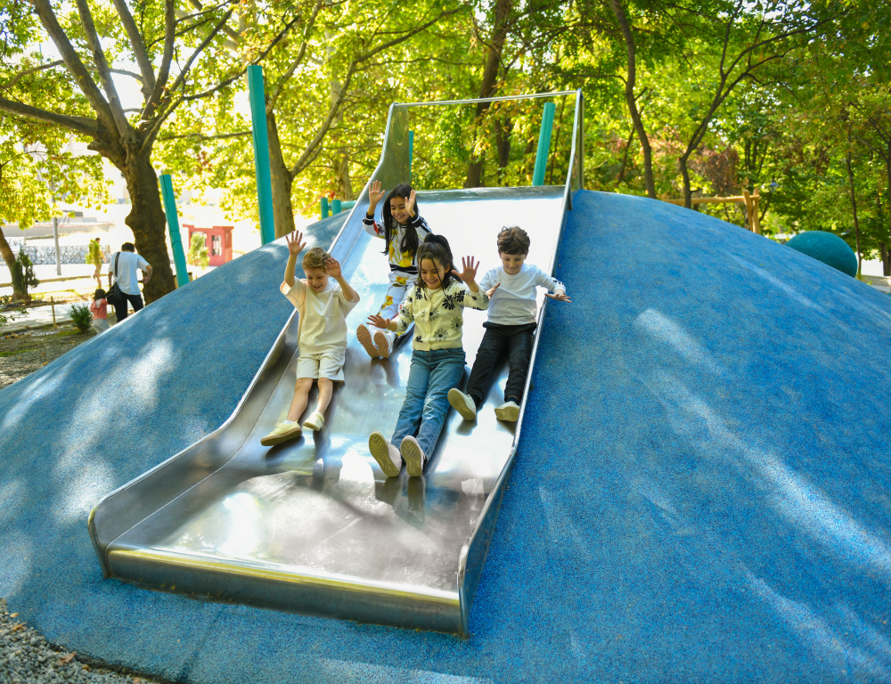 Yerevan’s first vertical playground invites children to climb three different height levels, culminating in the city’s tallest slide at 7 meters. Intended for children aged 3–7 and 7–12, it provides a multifunctional and physically engaging experience.